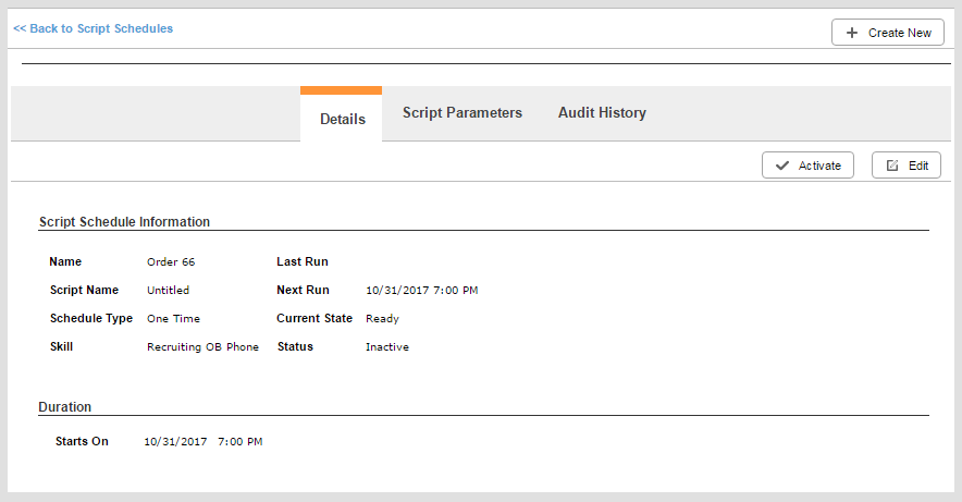 Script Schedule Details Tab