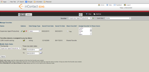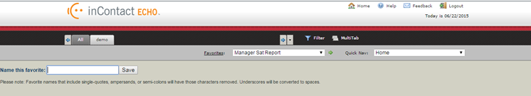 When naming the Favorite, use only letters or numbers. Do not use characters such as “&” or “-” in the name. These types of characters may cause the report to work incorrectly.