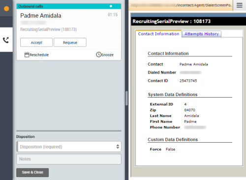 If your administrator configured screen pops, you can see information about a contact with whom you are communicating or are about to communicate when the conversation begins. This screen appears in either a new window or a panel. Typically a screen pop appears in a single Contact Information tab with general contact information. This topic describes the fields you see in that tab.