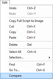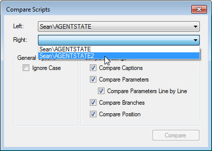 When the Compare Scripts window appears, select one of the open scripts in the Left field.