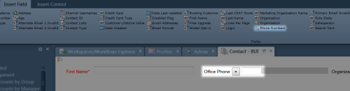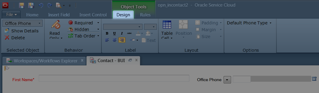 Click the Office Phone field to reveal the Object Tools, then click Design.