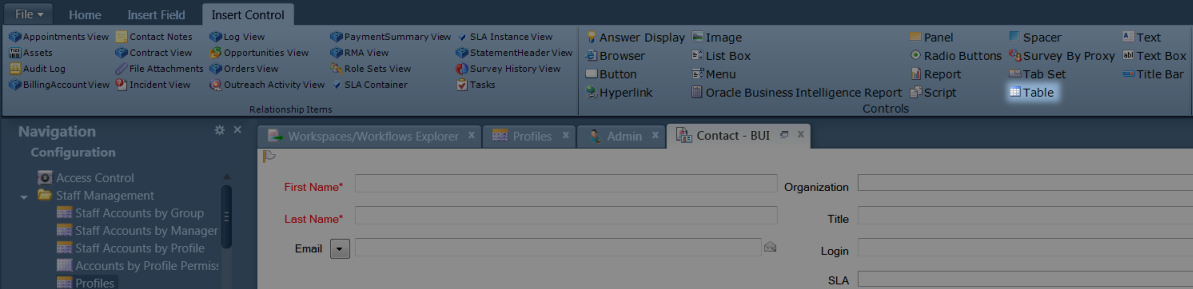 Drag and drop the Table into the Contact Workspace.