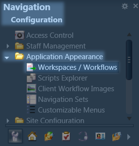 Under Navigation, click Configuration → Application Appearance → Workspaces/Workflows (double click).