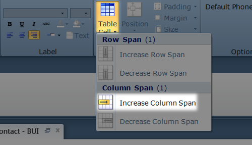 Click the Table Cell drop-down, and then click Increase Column Span.