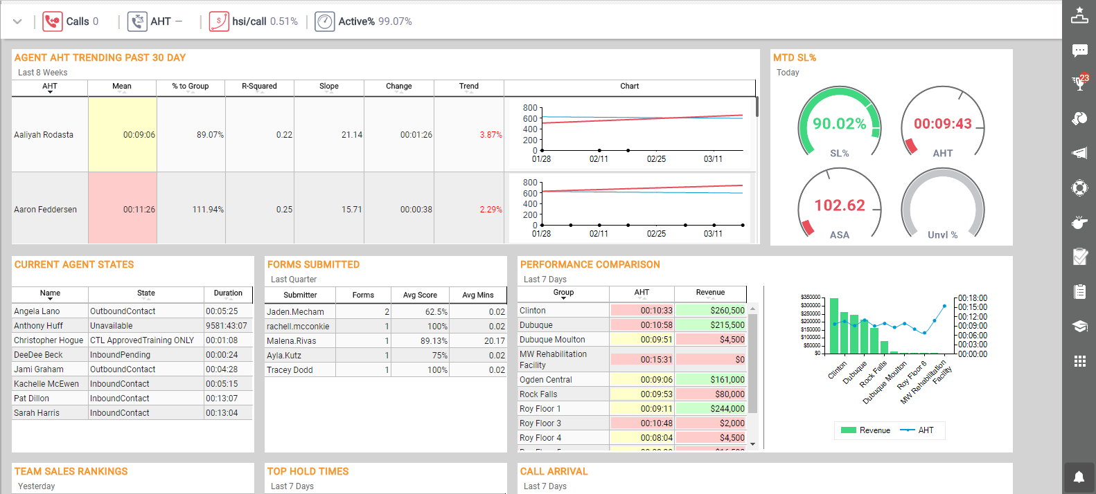 You can edit dashboards you create. You cannot edit shared dashboards unless you have permission to do so, but you can save a copy of a shared dashboard and use it as the basis for a new dashboard. For example, you might want to save a copy of the Supervisor dashboard in the previous image, and configure it to show only your team. Starting with an existing dashboard can save time when creating a new dashboard.